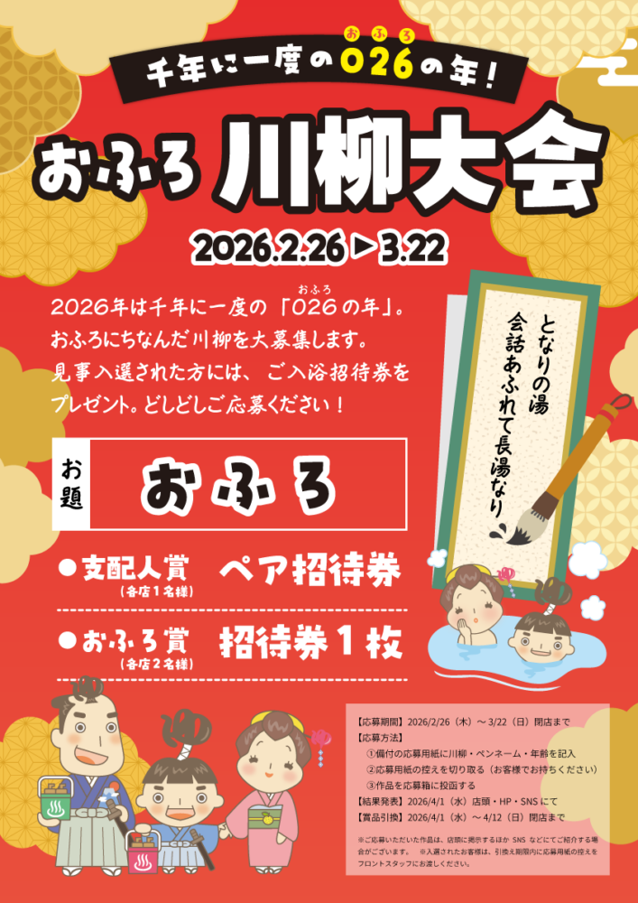 見事入選された方には、ご入浴招待券をプレゼント。